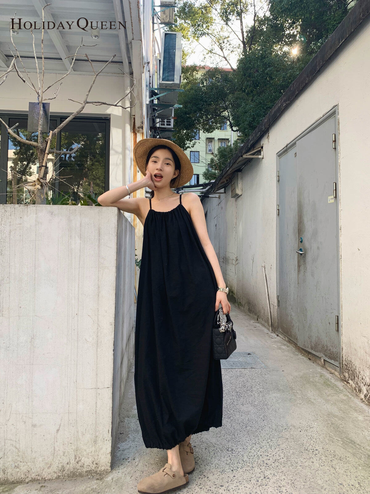 HolidayQueen New natural linen hanging neck loose style dress HQ2053
