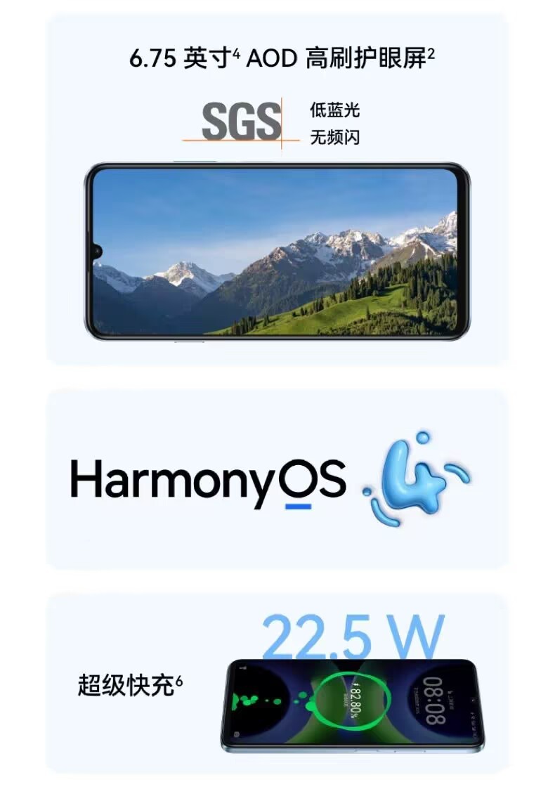 Huawei enjoys the 70S 6.75-inch AOD eye protection screen
