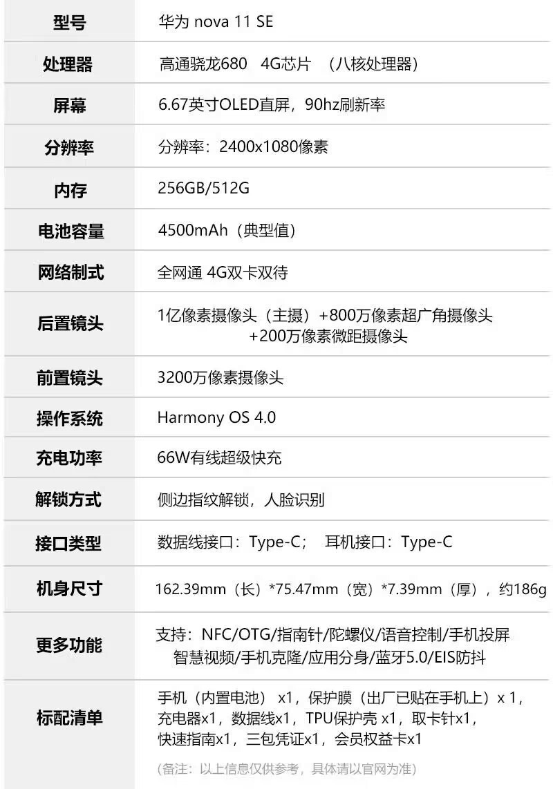 Huawei/ Huawei nova 11 SE HarmonyOS system 8G+512G genuine NFC mobile phone