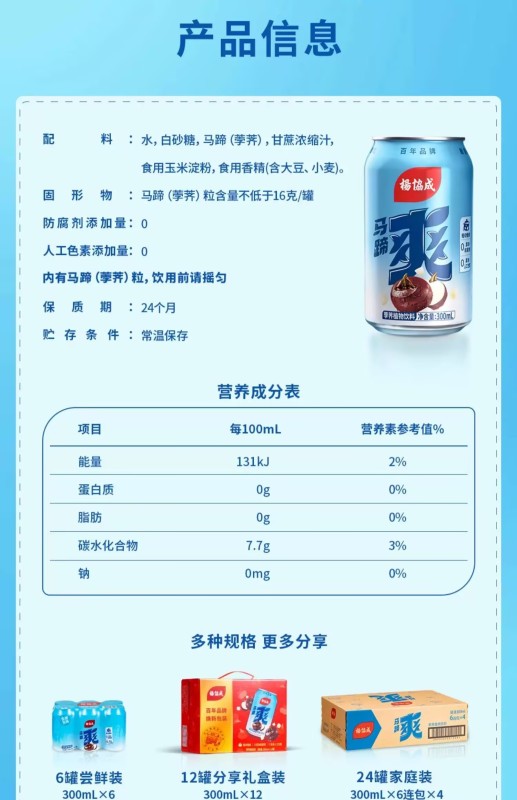 Yang Xiecheng Ma Tishuang pulp fruit and vegetable juice drink water chestnut flavor special drink 0 fat Ma Tishuang juice 24 cans