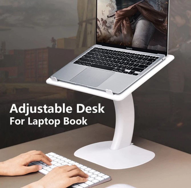 Adjustable Desk For Working And Reading✔️Ergonomic elevation angle protects the user's cervical spine and eye health.✔️Silicones provide the best protection for your equipment,✔️Compatible for 7-15 inch laptop.✔️Suitable for different scenariosThe best choice for daily work and business trip. Features• User-friendly concept, easily adjust to comfortable angle• Suitable for different scenarios, portable for daily work and business trip• Silicone pad for providing the best protection for device• Stable and durable Parameter • Color:White • Material:Plastic+Silicone • Applicable models:7-15 inch laptop