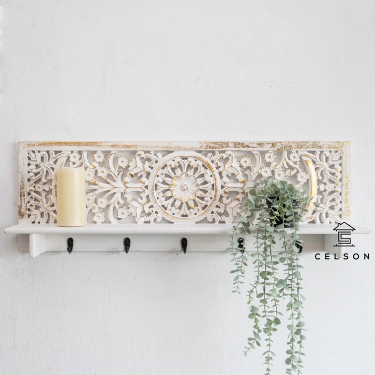 - This gorgeous wall shelve comes with multiple hooks & are the boost your wall needs!