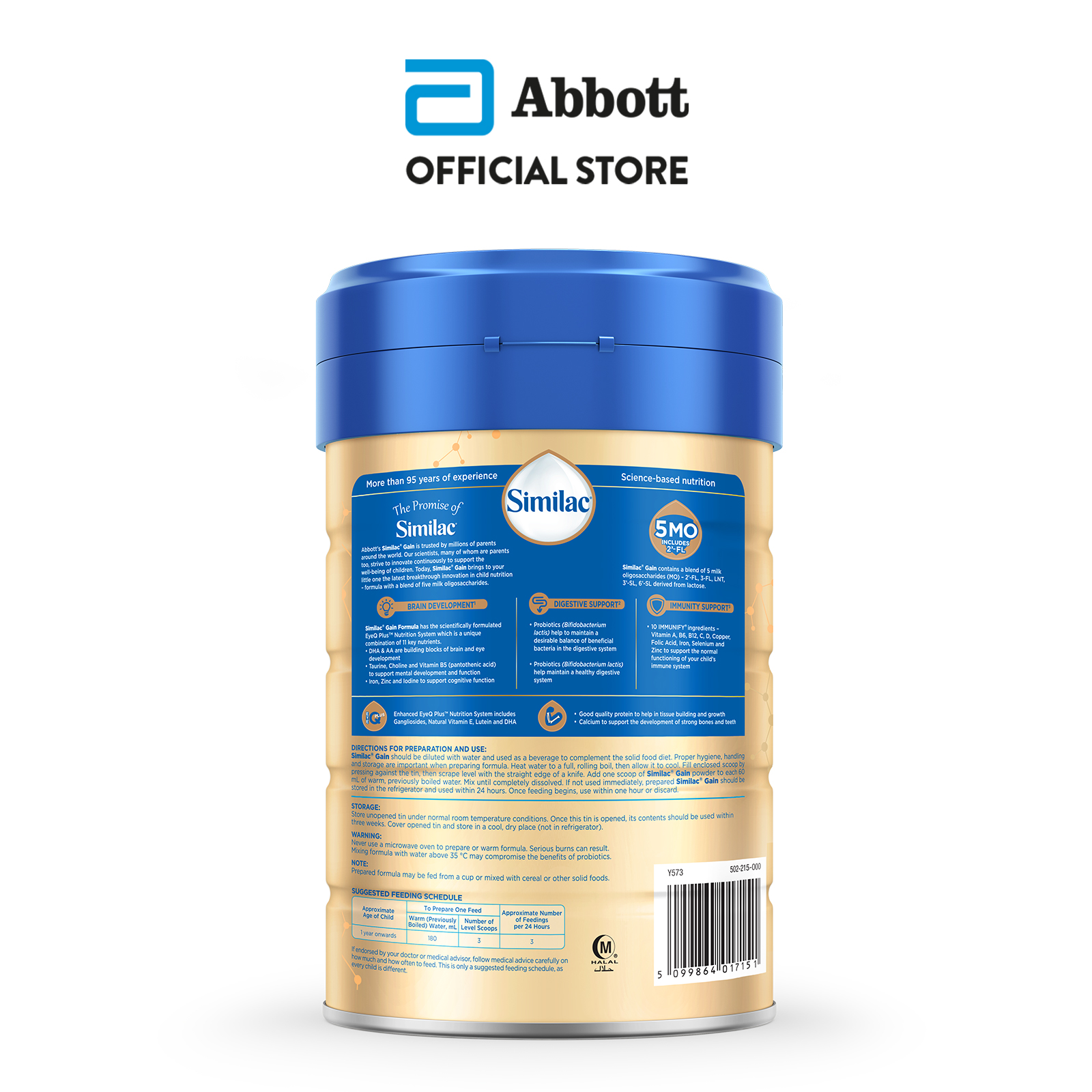 Similac Gain 5MO Stage 3 Growing-Up Baby Milk Powder Formula 850g (1 year onwards)