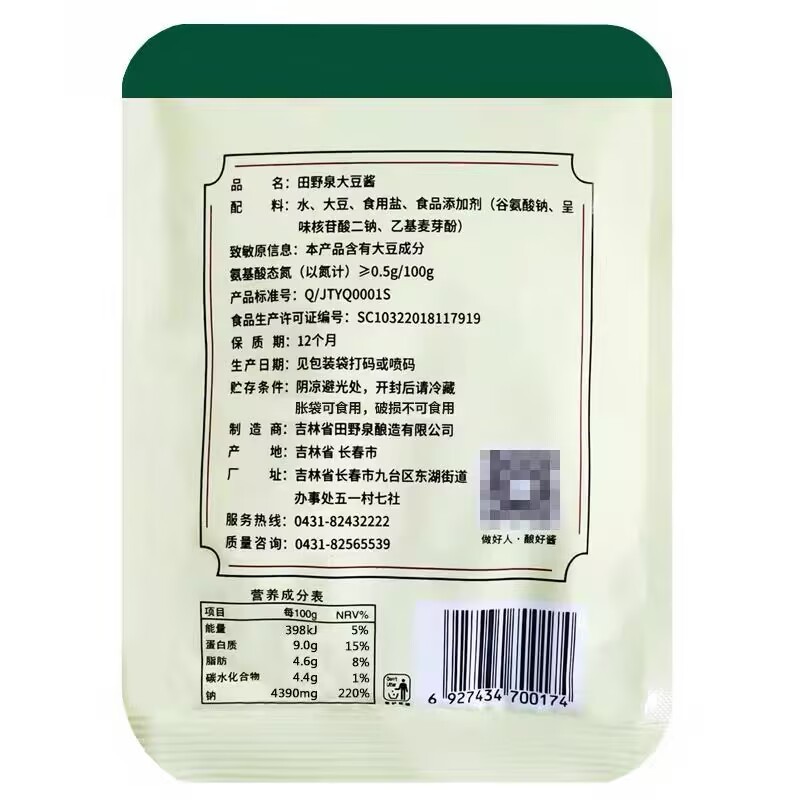 Tianyequan soybean sauce 90g*50 bags of northeast specialty farm smelly sauce soybean sauce bean paste whole box