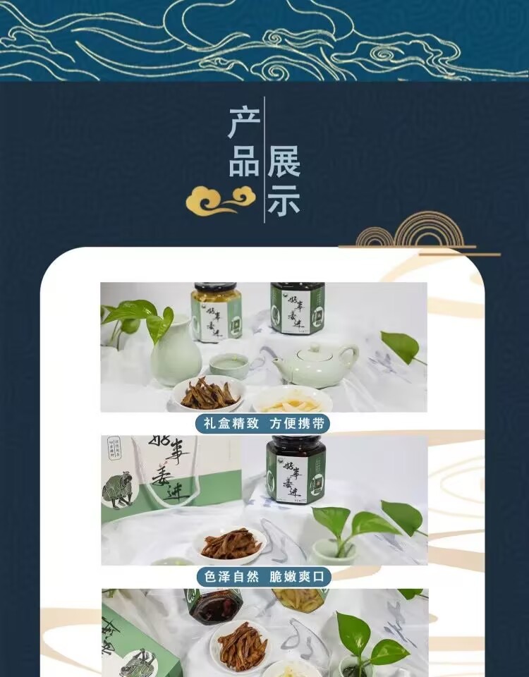 Anhui specialty Jinfengyuan Tongling white ginger sweet and sour soy sauce soaked ginger tasting gift bag 380g*2 bottles