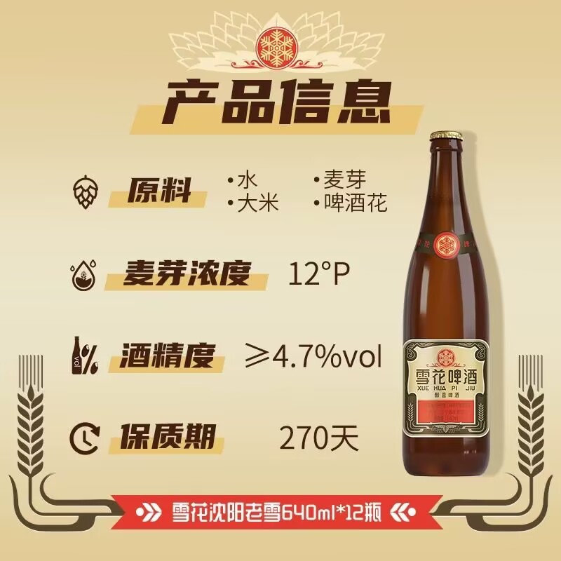 Snowflake Beer Classic Shenyang Old Snowflake 640ml*12 bottles *2 cases packed in a whole box with 12 high wort concentration