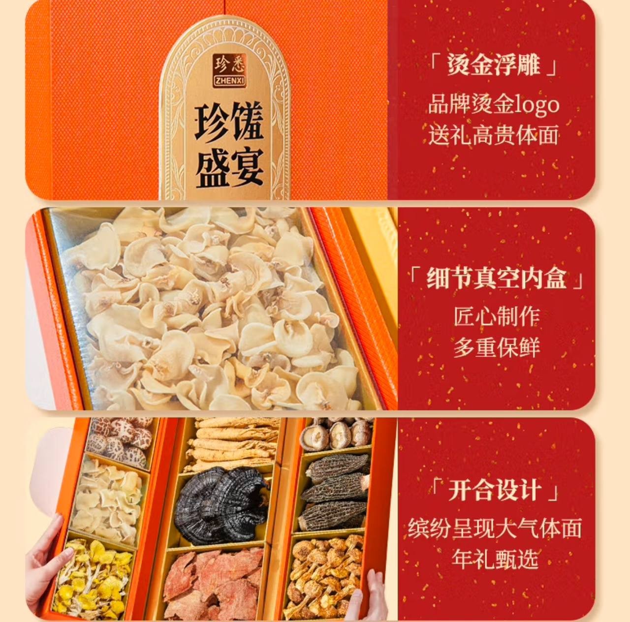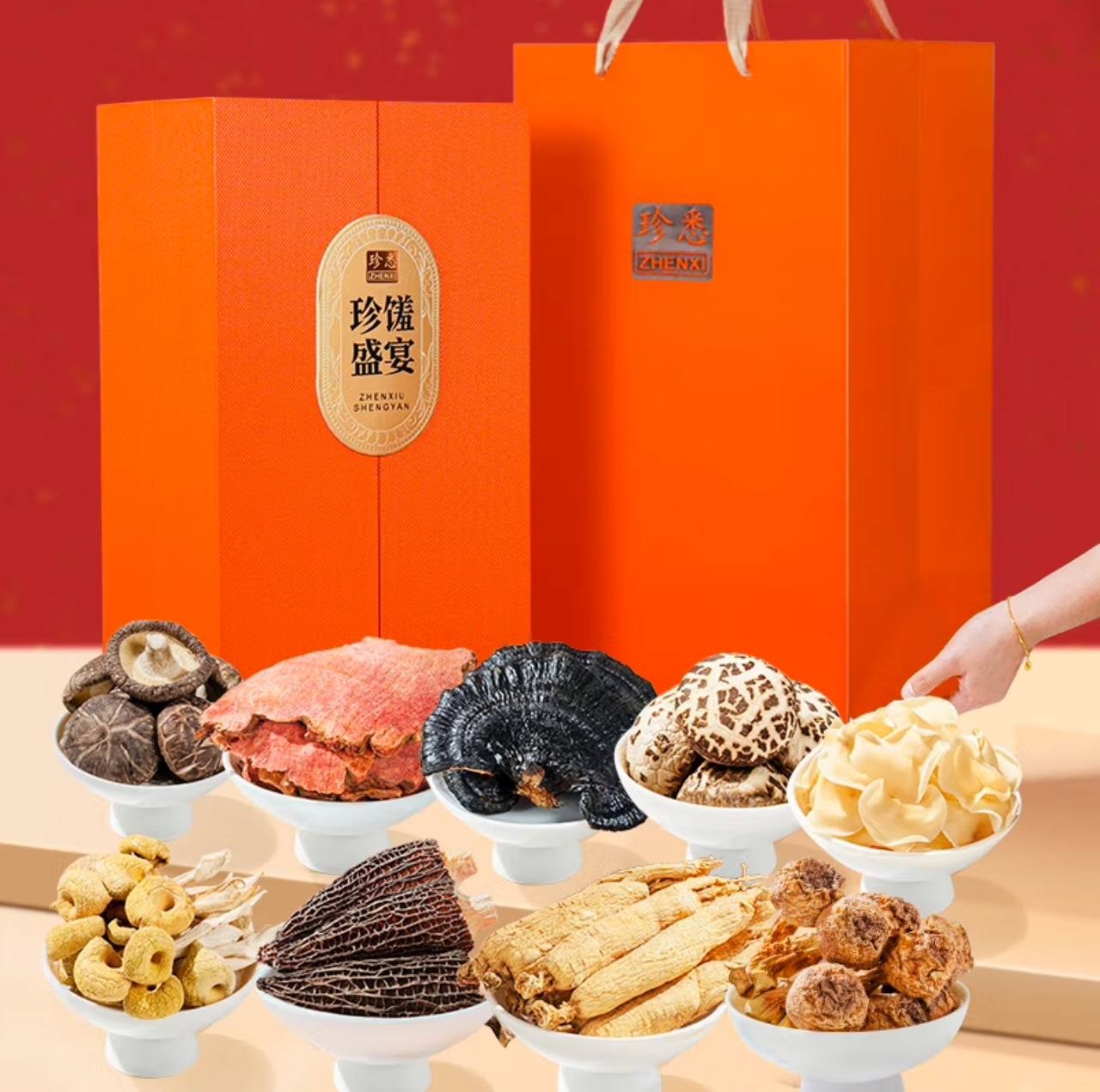 Zhenxi Mountain Mushroom Gift Box Double Door Ganoderma Lucidum Ginseng Dry Goods 9 Pieces 745g Holiday Gift Box for Elders